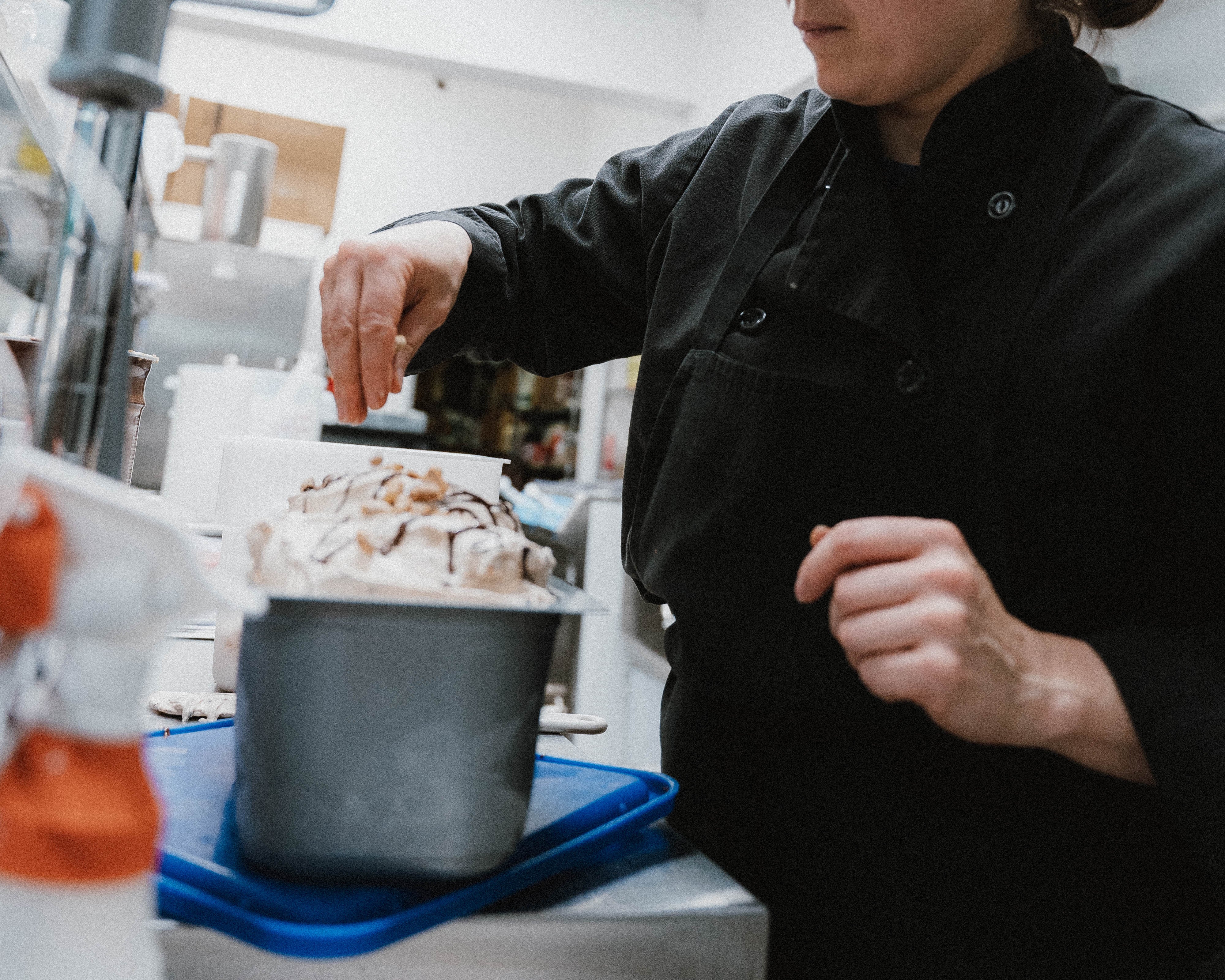 Once our gelato base is ready, we use our state-of-the-art Carpigiani gelato extractors to create each flavour in small, precise batches. This method guarantees consistency, freshness, and unmatched quality in every pan.