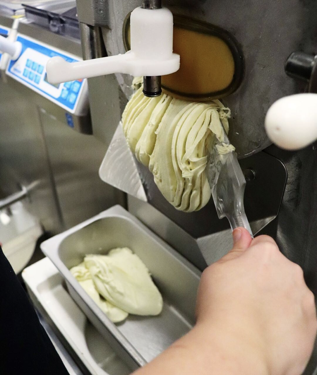Every batch of gelato begins with our custom-made base, crafted in-house from scratch. We carefully pasteurize our gelato bases to perfection, then age them for a minimum of 6 hours. This aging process ensures each gelato batch achieves optimal texture and intense, natural flavour.